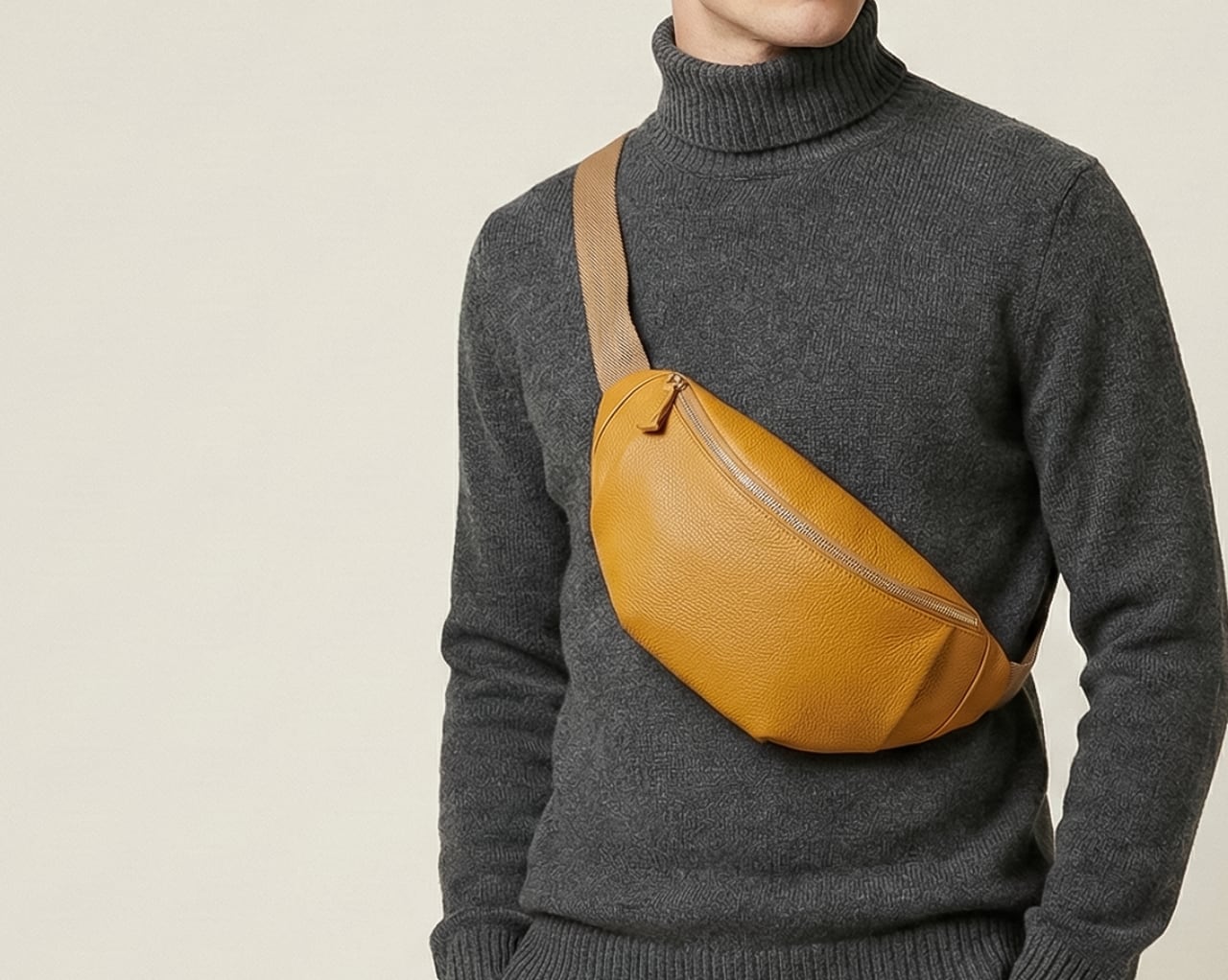 体のラインにフィット。つまみ縫いが生む 立体構造のボディバッグ。